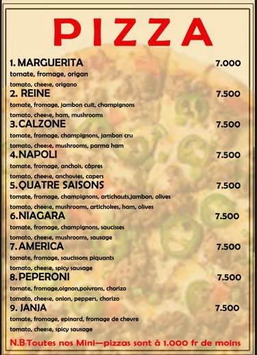 Notre menu